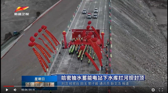 【新疆衛視】:哈密抽水蓄能電站下水庫攔河壩封頂