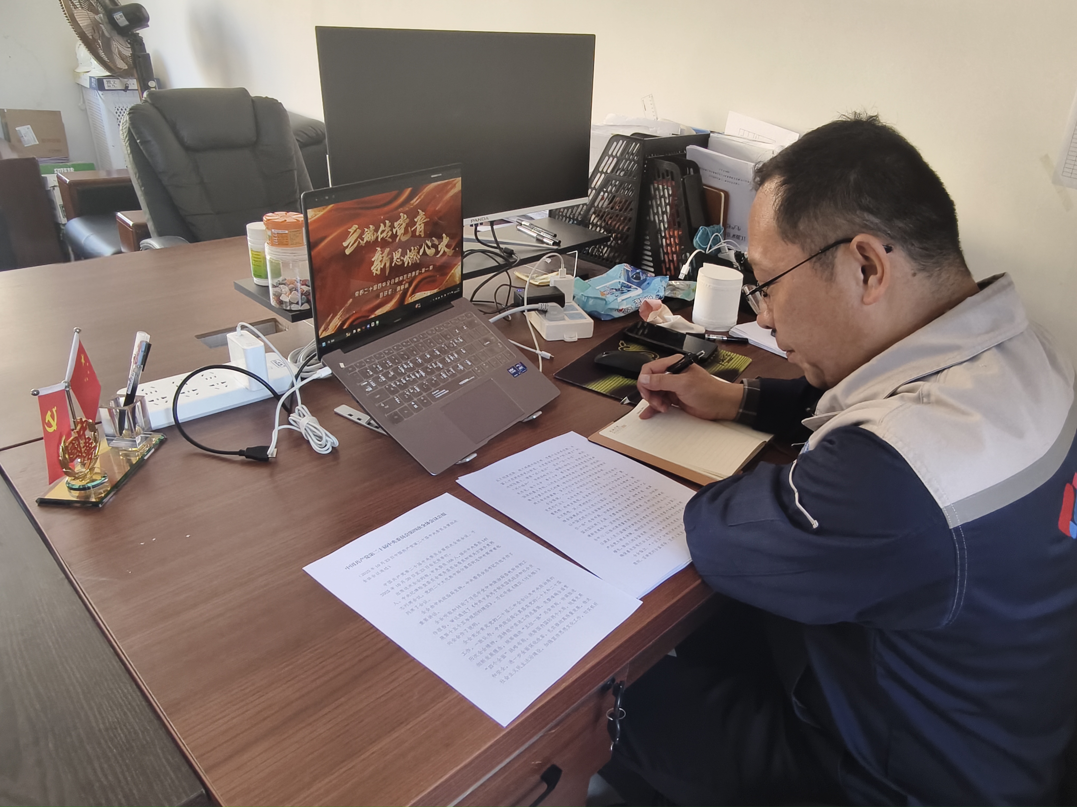 日前,公司黨委精心組織學習宣傳貫徹黨的二十屆四中全會精神,引導全體黨員干部職工把思想和行動統(tǒng)一到全會精神上來,通過多種形式在各基層黨組織掀起學習宣傳貫徹黨的二十屆四中全會精神的熱潮。 七公司黨委創(chuàng)新啟動“云端傳黨音 新思燃心火”線上宣講主題活動,一方方“小屏幕”化身宣講新陣地,讓全會精神如春風化雨,精準滴灌至各項目一線,傳播到每一位基層員工身邊?;顒右孕旅襟w為載體,組建精銳宣講團,致力于將宏大的“大藍圖”轉(zhuǎn)化為親切可感的“身邊話”。 “云”端聚力,打破時空傳遞“黨音” 面對工程項目點多線長、人員分散的現(xiàn)實挑戰(zhàn),七公司黨委精準破題,主動擁抱新媒體,將宣講主陣地搬至“云端”?;顒忧擅钸\用音頻“伴隨式”學習特點,打破時空限制,讓散布各地的員工能利用碎片化時間隨時聽、反復學,確保全會精神學習“一個都不掉隊”。 此舉不僅是宣貫形式的一次智慧升級,更是著力構(gòu)建“指尖上”的黨建新陣地、打通理論傳播“最后一公里”的務實舉措,真正讓黨的創(chuàng)新理論“飛入一線崗位”?!爸挥凶约合葘W懂弄通,才能講得生動、講得透徹。我覺得,學習全會精神,關(guān)鍵在落實。我打算結(jié)合江源各項目在鄉(xiāng)村振興、生態(tài)建設(shè)等方面的具體實踐,把‘高質(zhì)量發(fā)展’這一宏大主題,講成員工看得見、摸得著的具體行動?!苯错椖奎h支部宣講員趙明杰表示。 “矩陣”發(fā)聲,關(guān)鍵少數(shù)引爆全員熱點 為構(gòu)建高效宣講矩陣,七公司黨委精心組建了一支由基層黨支部書記、部門負責人及項目經(jīng)理構(gòu)成的19名“關(guān)鍵少數(shù)”宣講團,分十期開展常態(tài)化、接力式宣講。機關(guān)黨支部率先開講,圍繞“十五五”時期經(jīng)濟社會發(fā)展必須遵循的原則,結(jié)合崗位實際暢談體會,樹立了“學用結(jié)合”的標桿,形成了“關(guān)鍵少數(shù)領(lǐng)學、業(yè)務骨干跟學、全體員工共學”的分層聯(lián)動機制。 宣講不僅是傳播黨的聲音的過程,更成為骨干隊伍深化學習、自我提升的“練兵場”。各位宣講官為呈現(xiàn)高質(zhì)量內(nèi)容,主動先學一步、深學一層,在研讀原文、撰寫講稿、聯(lián)系實際的過程中,持續(xù)提升黨性修養(yǎng)、深化對全會精神的理解。通過“以講促學、講學相長”的良性機制,有效促進了管理骨干政治素養(yǎng)與理論水平的雙重提升。 “為了講清‘十五五’原則,我反復研讀多遍公報。這個過程,讓我真切體會到宣講本身就是一次最深入的深度學習,使我對全會精神的理解達到了全新高度?!睓C關(guān)黨支部宣講員唐麗麗感慨道。 “聲”入人心,學用貫通鎖定“靶心” 為確保宣講“既精準又解渴”,活動創(chuàng)新采用“理論解讀+實干擔當”的兩段式音頻結(jié)構(gòu)。宣講內(nèi)容嚴格對標全會公報和《建議》原文,確保理論傳導“不走樣”;同時,宣講官緊密結(jié)合市場拓展、技術(shù)創(chuàng)新、履約創(chuàng)效等實際工作,談感想、立志向、提建議,推動全會精神從“紙面”落到“地面”?;顒又ν苿印皩W思用貫通、知信行統(tǒng)一”,圍繞企業(yè)發(fā)展的重點工作展開,進一步凝聚共識,激勵全體員工把學習成果轉(zhuǎn)化為推動公司高質(zhì)量發(fā)展的具體行動和實干動能。 一場通過“小屏幕”展開的“大學習”正在水電一局全面鋪開,一股依托“新載體”激發(fā)的“新動能”正不斷匯聚。水電一局黨委將以更高站位、更實舉措持續(xù)深入學習宣傳貫徹黨的二十屆四中全會精神,確保全會精神在每一個基層黨組織落地生根、開花結(jié)果,把學習成果轉(zhuǎn)化為謀劃工作的思路、推動發(fā)展的動力、服務群眾的實效。 |