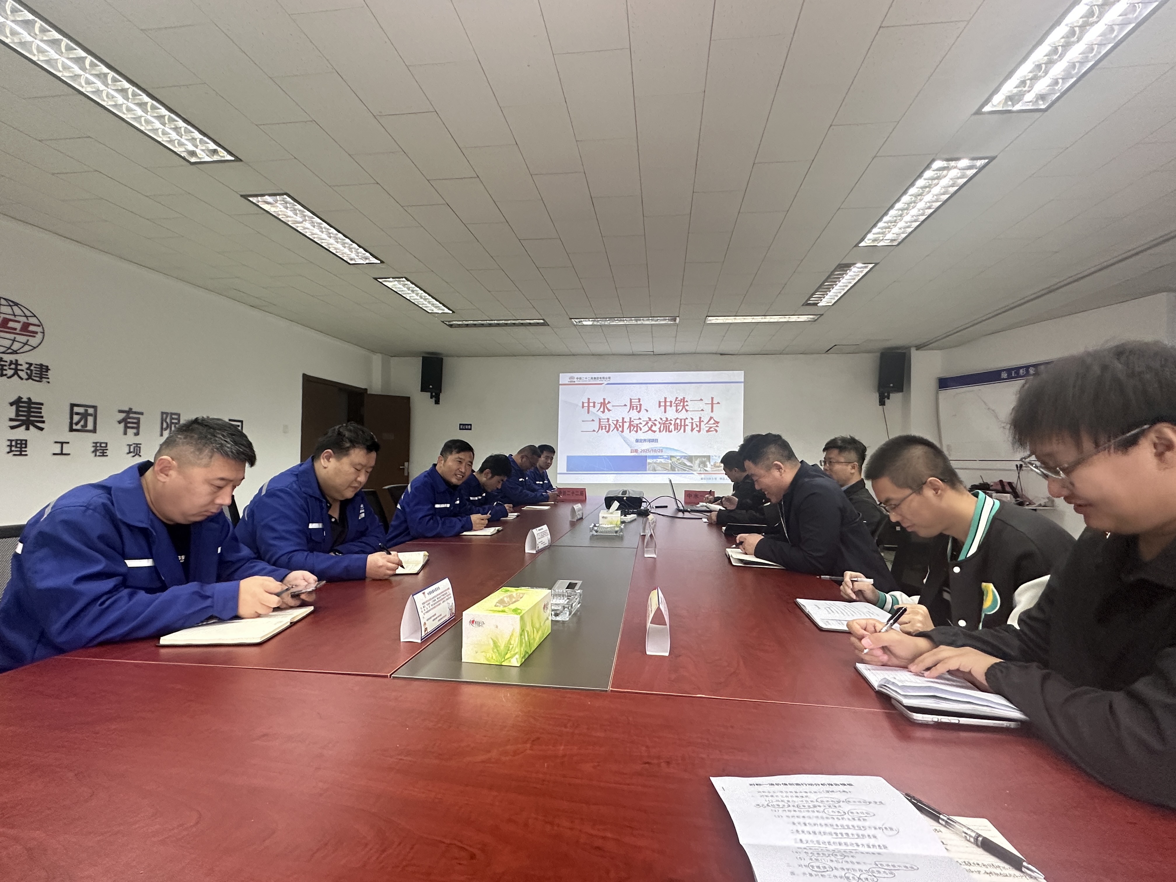 為進一步加強技術交流溝通,充分發揮施工技術在科技創新、質量、安全和降本增效方面的支撐作用,全面提升項目管理水平,10月29日,保定界河項目部與EPC總承包單位之一的中鐵二十二局界河項目部開展對標學習交流活動。